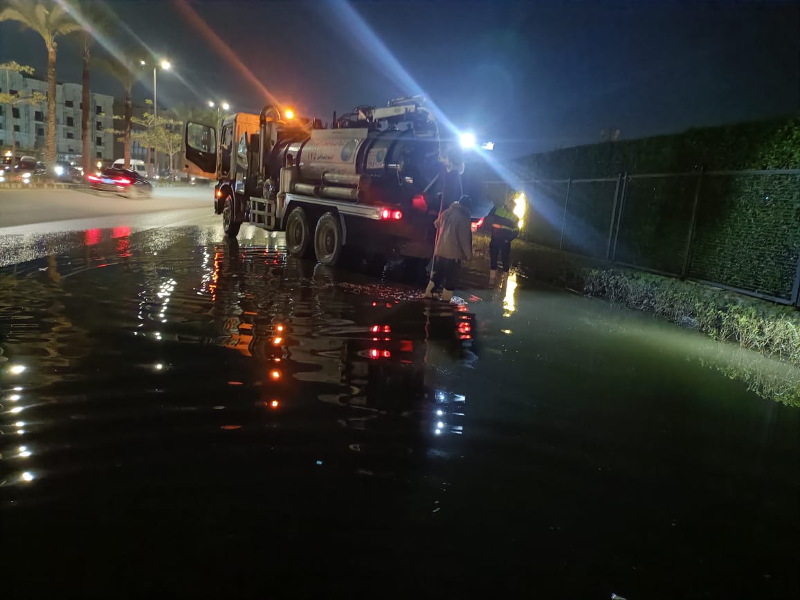 وأضاف أن الأعمال ما زالت جارية لسحب تجمعات المياه من محور المشير طنطاوي في اتجاه القاهرة الجديدة، ومنطقة بطء شنلزابي باتجاه أحمد الزمر، حيث تواصل فرق الطوارئ العمل على مدار الساعة، باستخدام أحدث المعدات وسيارات الشفط، لضمان سرعة الانتهاء من الأعمال.